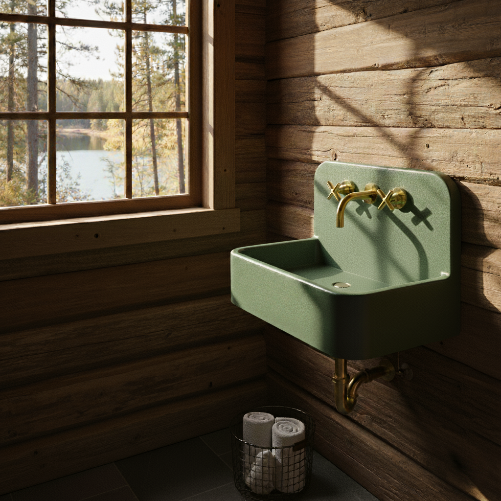 This handmade 22" rectangular concrete sink features an integrated backsplash and is crafted in USA. Designed for wall-mounted (floating) or vanity top installation, it combines sculptural form with functional height for added splash protection. Available exclusively with three faucet holes. No overflow. Wall-mount brackets (BR-ST14 or BR1711) are sold separately and only required for floating installations. Brackets are not needed when installed on a console or countertop. Shipping Class 4.