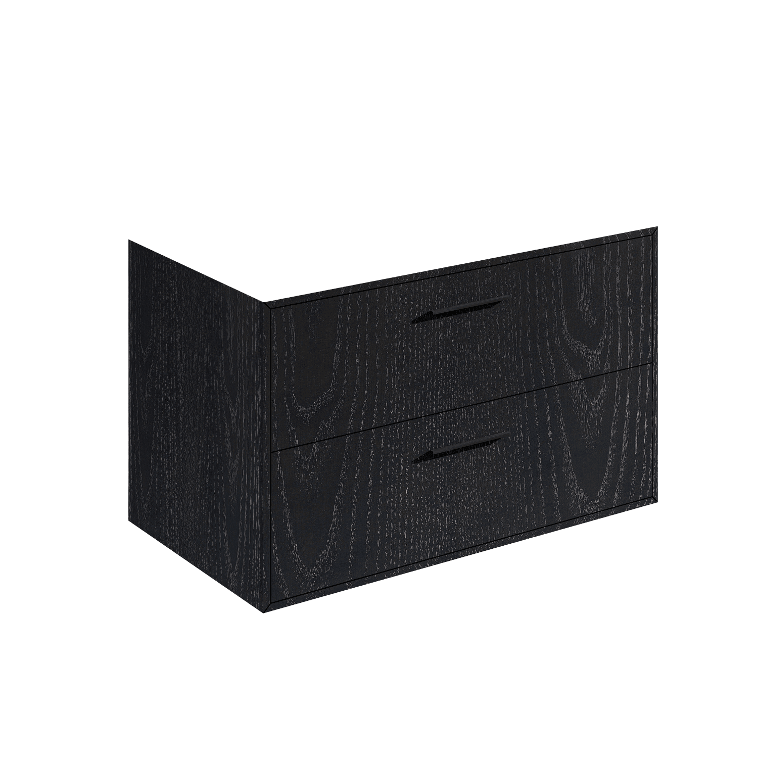 Wall-mount vanity with two drawers, handmade in our factory in the USA by master artisans using the finest quality American woods from 100% natural, renewable forests. Features a fully welded stainless steel frame, solid surface countertop, and two shelves. Pulls are included but not installed (installation available upon request). Shipping Class 4.