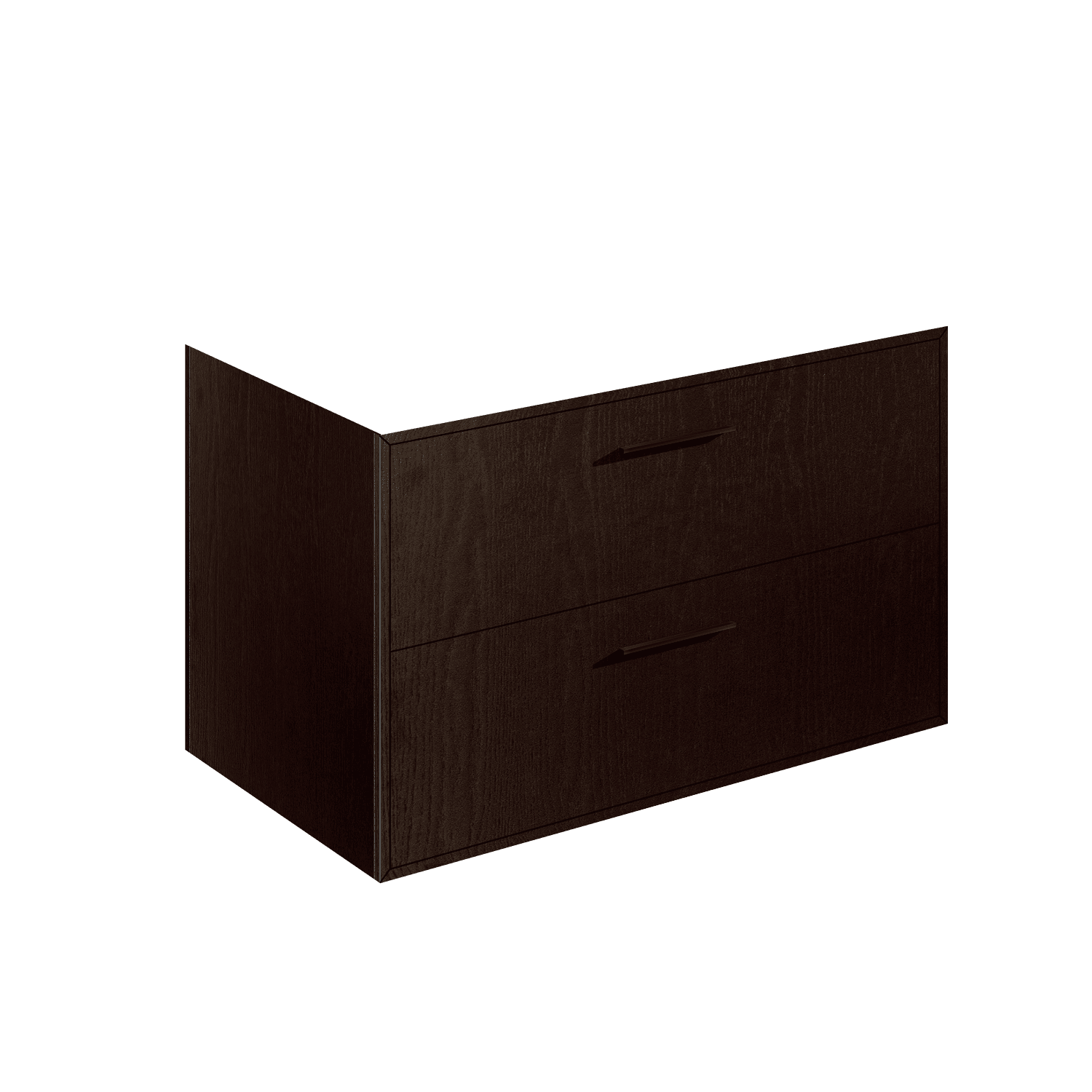 Wall-mount vanity with two drawers, handmade in our factory in the USA by master artisans using the finest quality American woods from 100% natural, renewable forests. Features a fully welded stainless steel frame, solid surface countertop, and two shelves. Pulls are included but not installed (installation available upon request). Shipping Class 4.