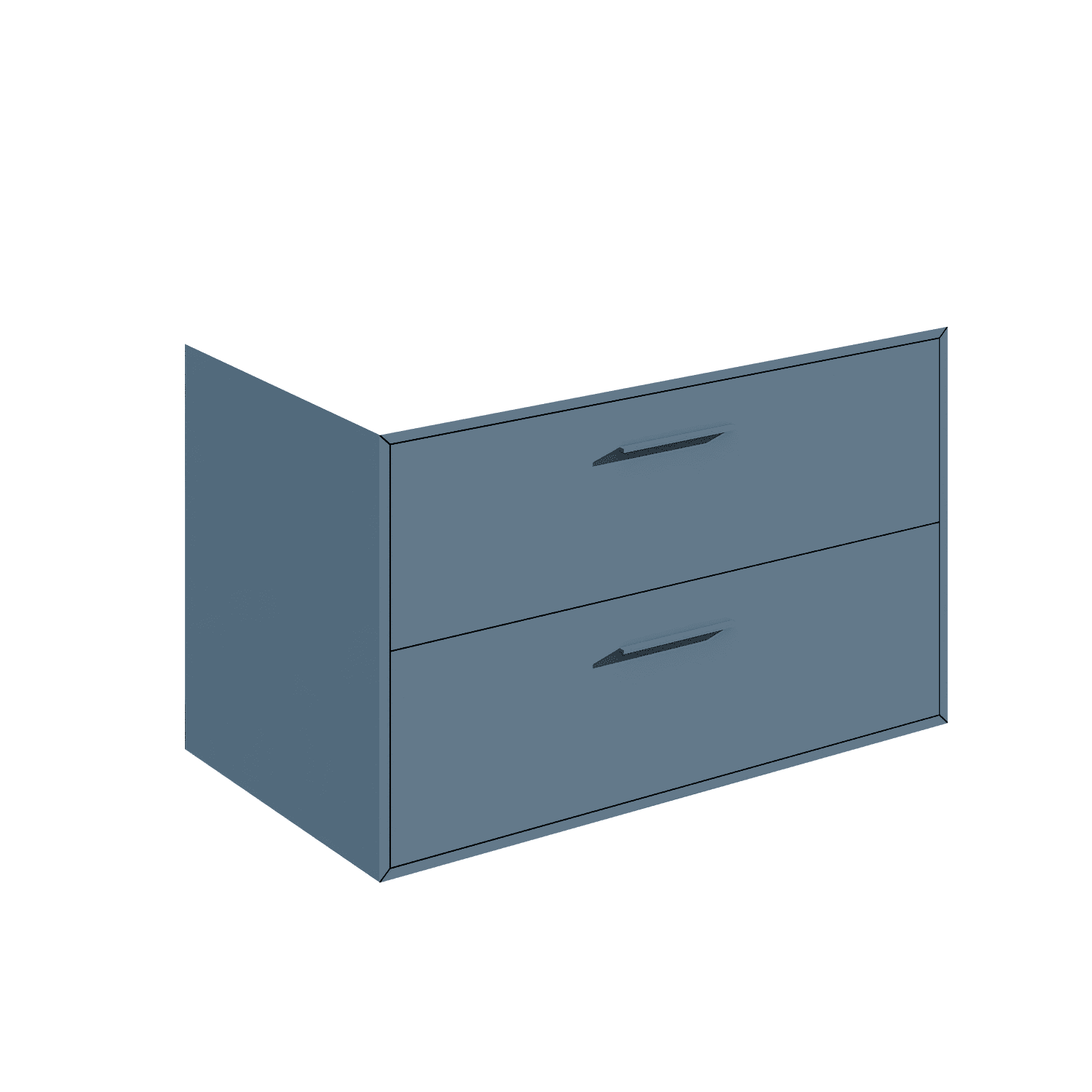 Wall-mount vanity with two drawers, handmade in our factory in the USA by master artisans using the finest quality American woods from 100% natural, renewable forests. Features a fully welded stainless steel frame, solid surface countertop, and two shelves. Pulls are included but not installed (installation available upon request). Shipping Class 4.