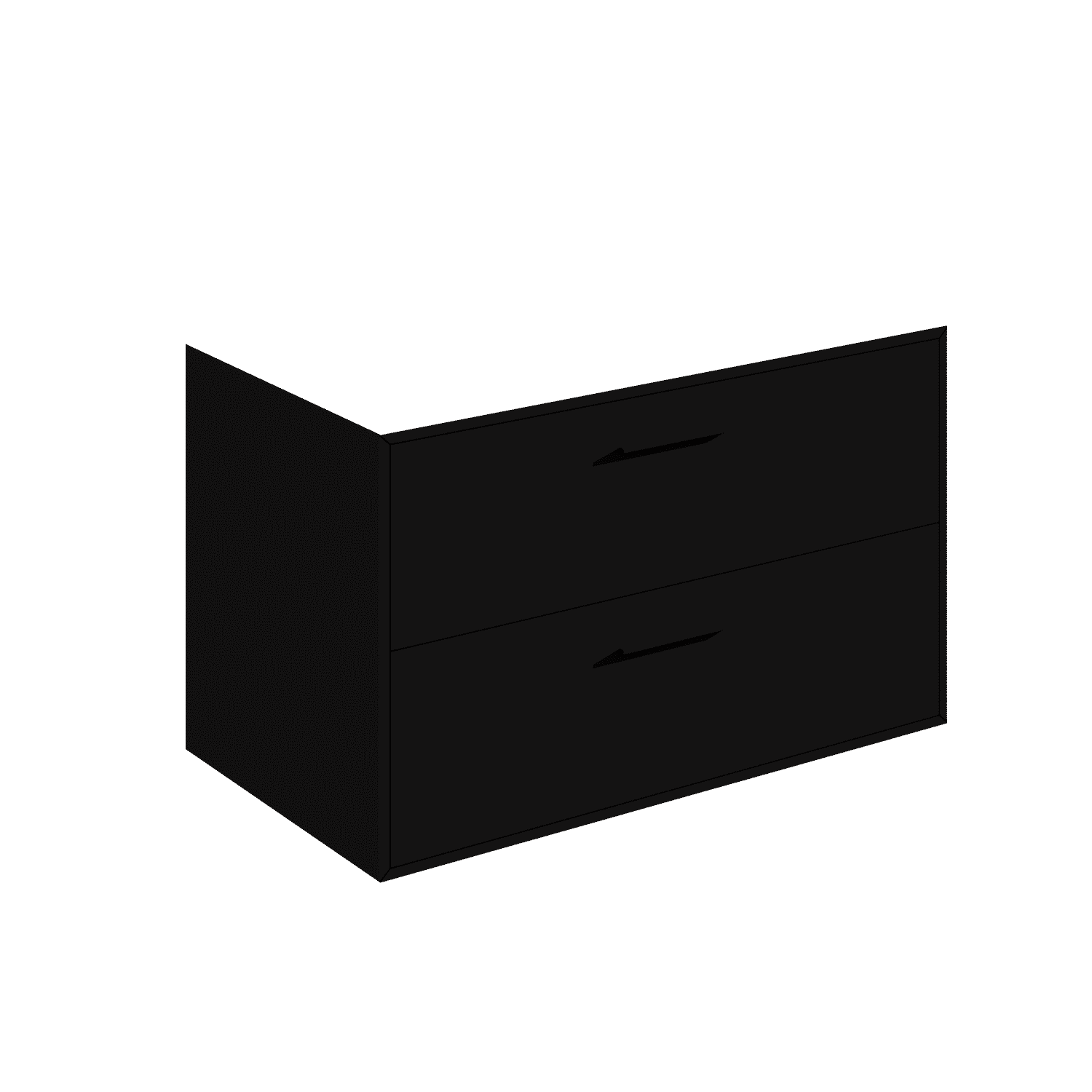 Wall-mount vanity with two drawers, handmade in our factory in the USA by master artisans using the finest quality American woods from 100% natural, renewable forests. Features a fully welded stainless steel frame, solid surface countertop, and two shelves. Pulls are included but not installed (installation available upon request). Shipping Class 4.