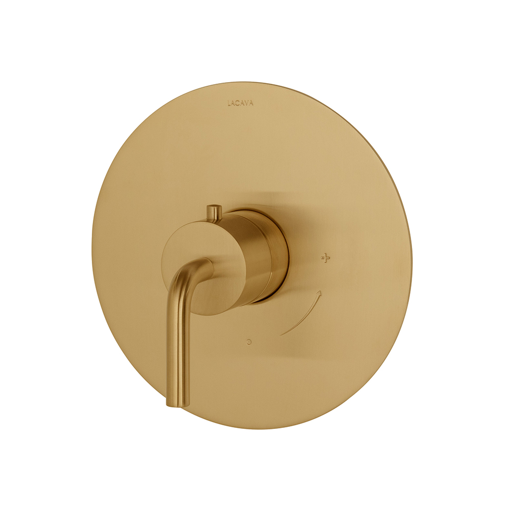 Built-in thermostatic valve with single handle and round backplate. Water flow rate: 10 gpm at 43.5 psi. Rough-in #VTH0 and trim #15TH0.C.R-A sold separately. Shipping class 1.