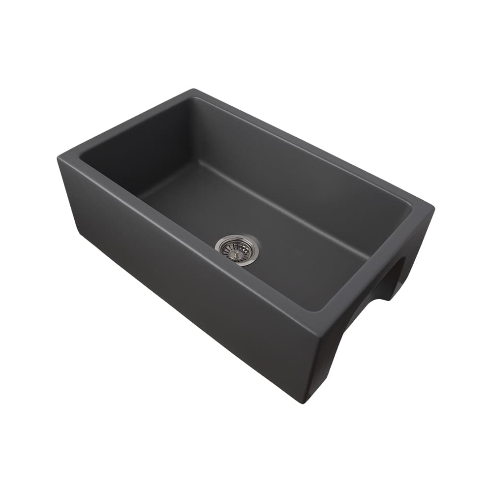 Drop-in fire clay farmhouse kitchen sink. Reversible fluted or smooth front. Shipping Class 4.
