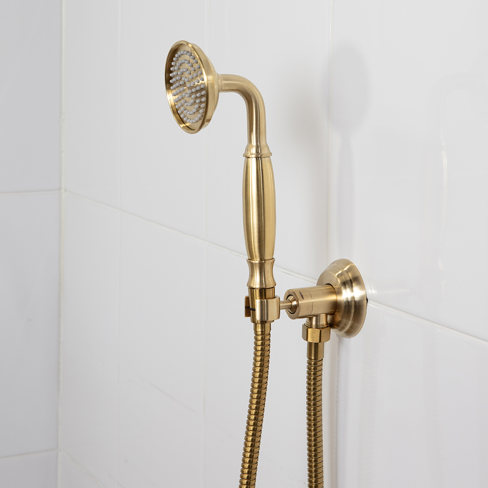 Wall union with a hook for hand-held shower head. Shipping class 1.