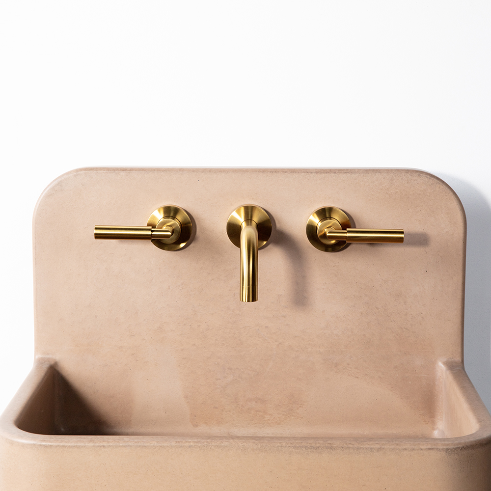 This handmade 22" rectangular concrete sink features an integrated backsplash and is crafted in USA. Designed for wall-mounted (floating) or vanity top installation, it combines sculptural form with functional height for added splash protection. Available exclusively with three faucet holes. No overflow. Wall-mount brackets (BR-ST14 or BR1711) are sold separately and only required for floating installations. Brackets are not needed when installed on a console or countertop. Shipping Class 4.