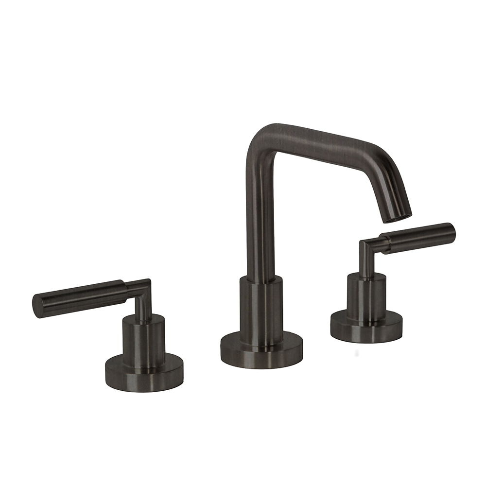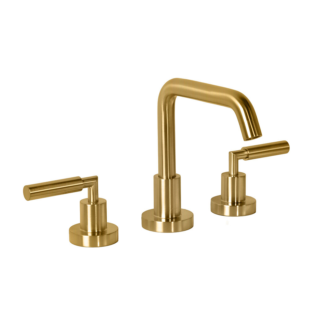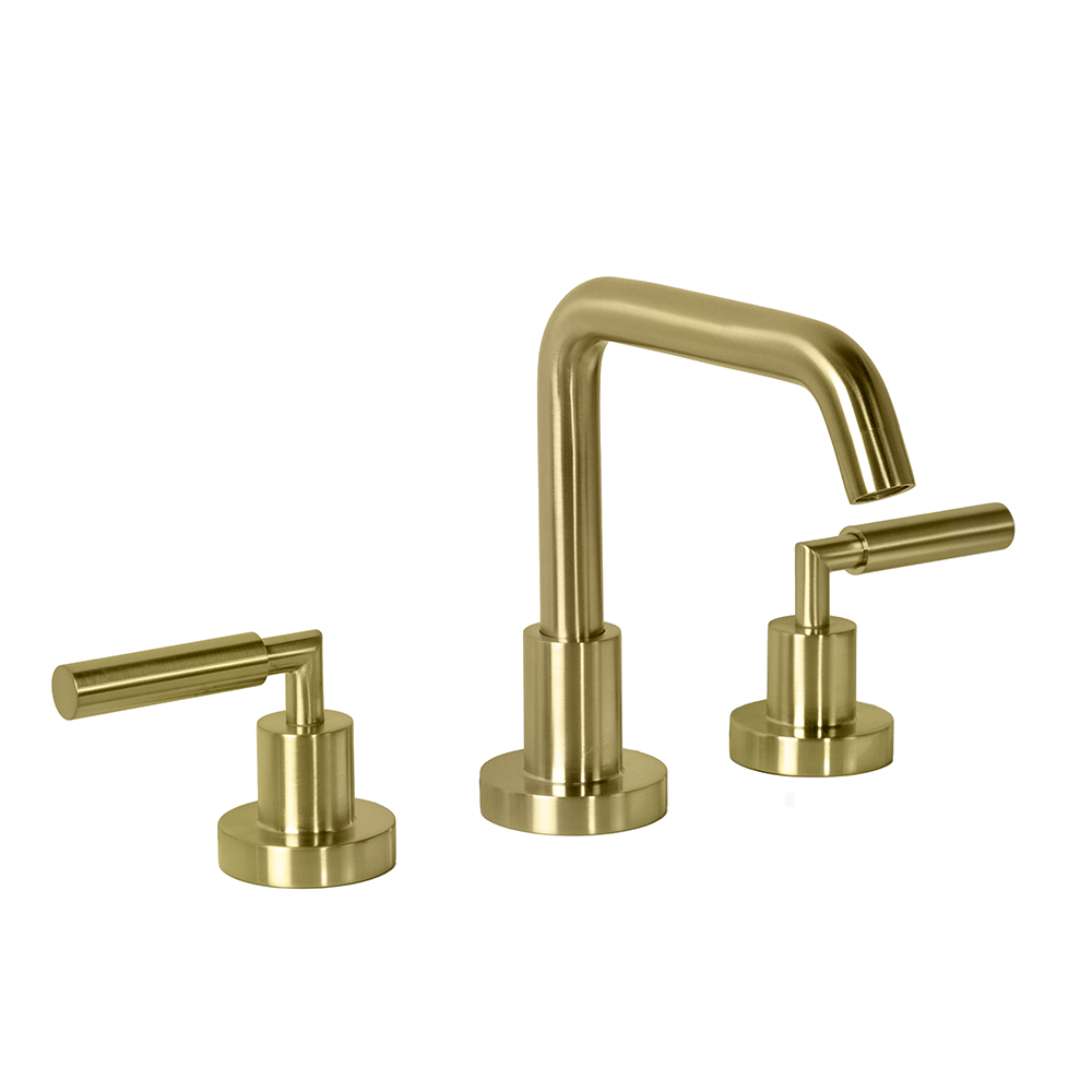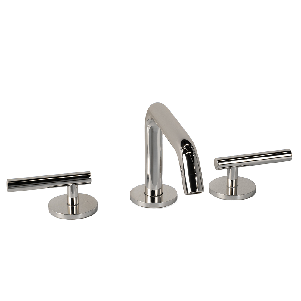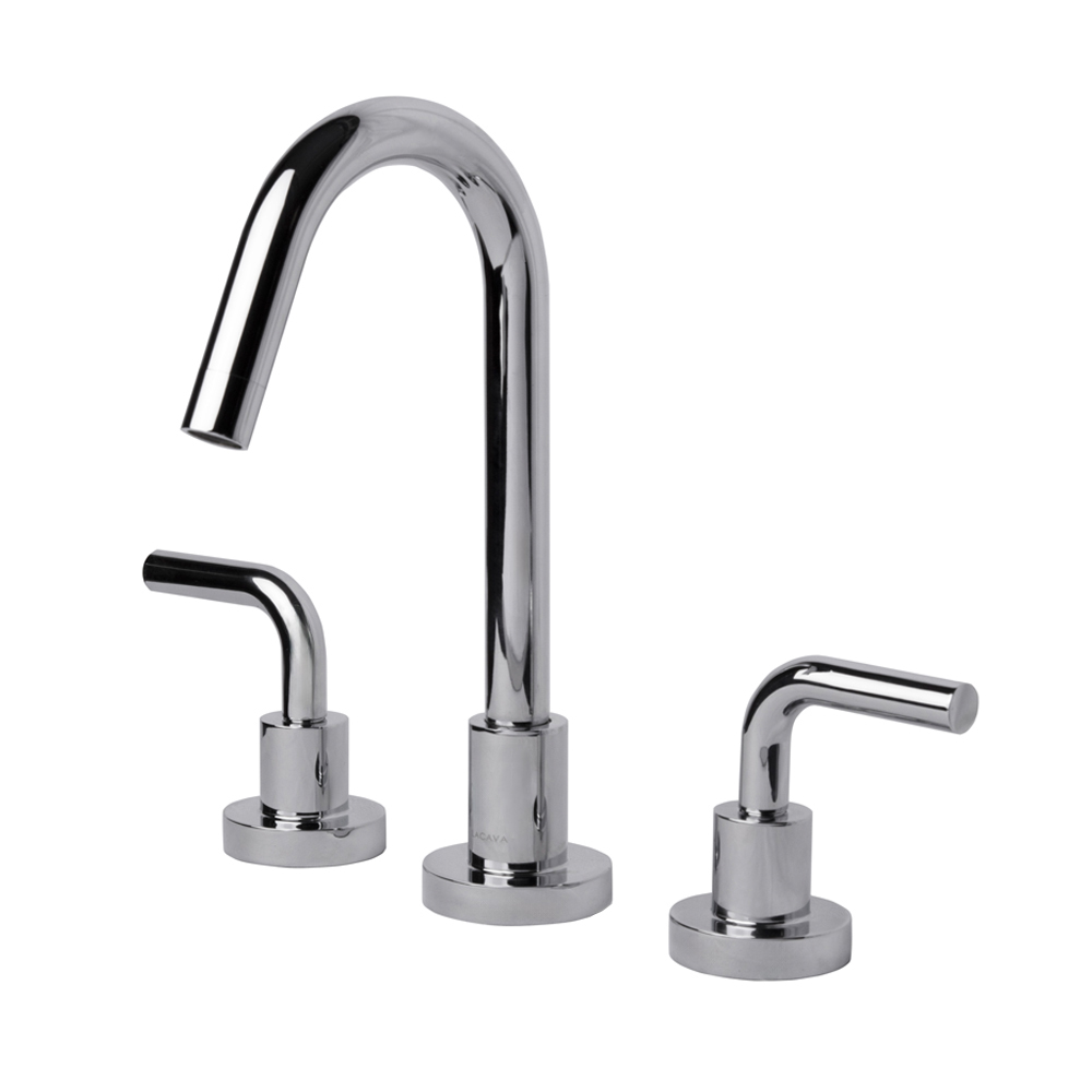 Deck-mount three-hole faucet with a goose-neck swiveling spout, two lever handles, and pop-up drain 7100-17 included. Water flow rate: 1.2 gpm pressure compensating aerator. Shipping class 1.
