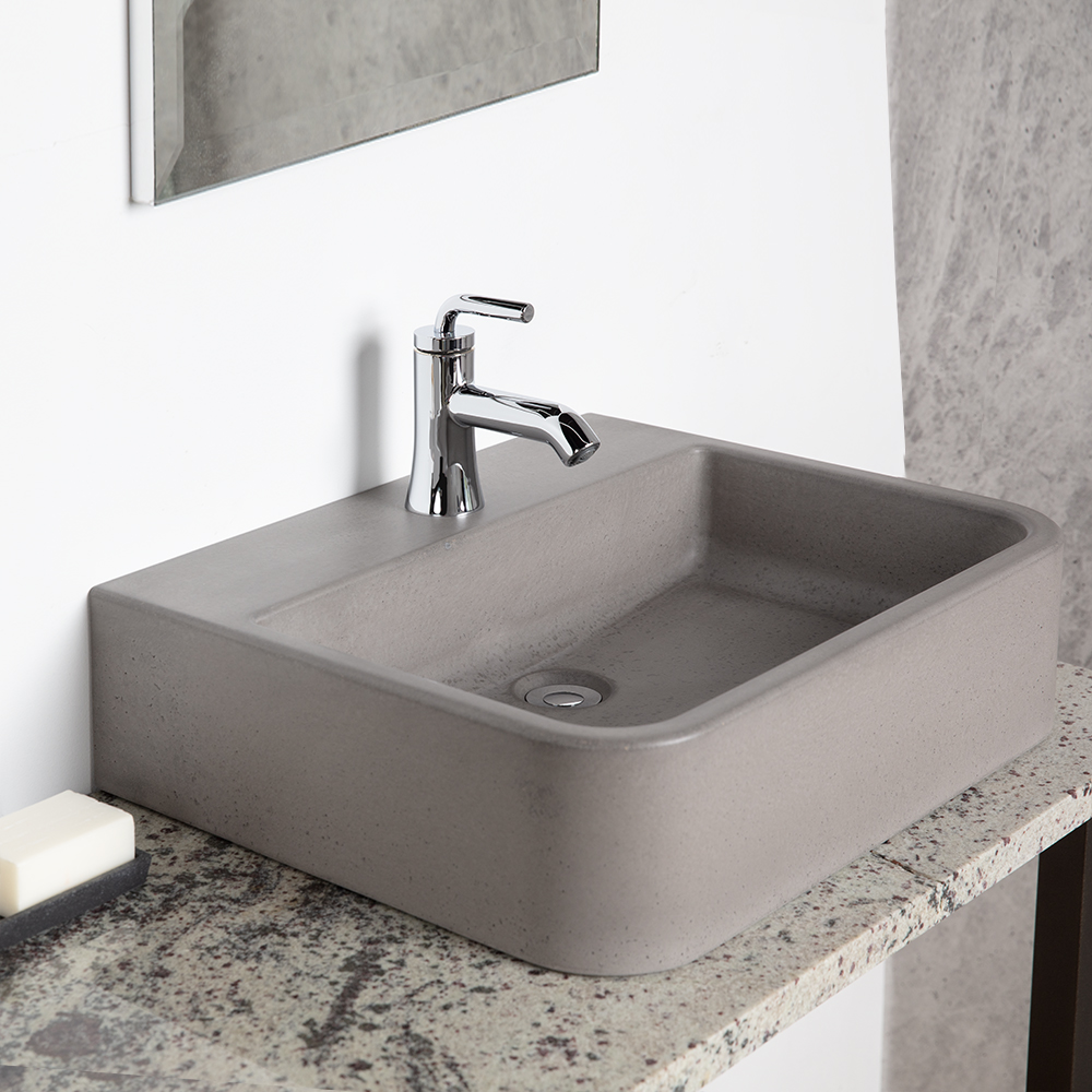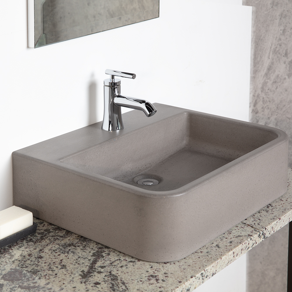 This handmade 22" rectangular concrete sink is crafted in USA, and designed for either wall-mounted (floating) or vanity top installation. Its clean lines and modern silhouette make it a versatile choice for contemporary and transitional bathrooms. No overflow. ADA compliant when installed to specific requirements. Wall-mount brackets (BR-ST18 or BR1715) are sold separately and only required for floating installations. No brackets needed when used on a console or countertop. Shipping Class 3.