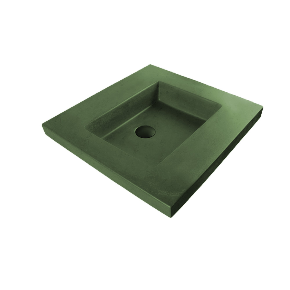 This handmade 24" square concrete vanity top features a seamlessly integrated sink, offering a sleek, monolithic look ideal for modern and minimalist bathrooms. Crafted in USA, with no overflow. Compatible with select 24" vanities (sold separately): NTR-UN-24, KUB-W-24, KUB-W-24B, LRS-F-24, STL-F-24A, STL-F-24B, STL-W-24, STL-W-24B. Shipping Class 4.