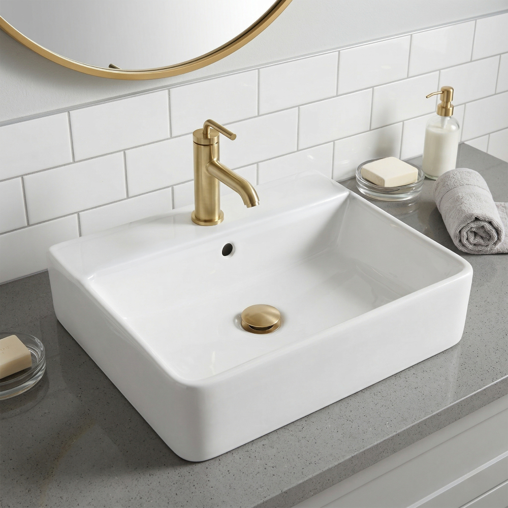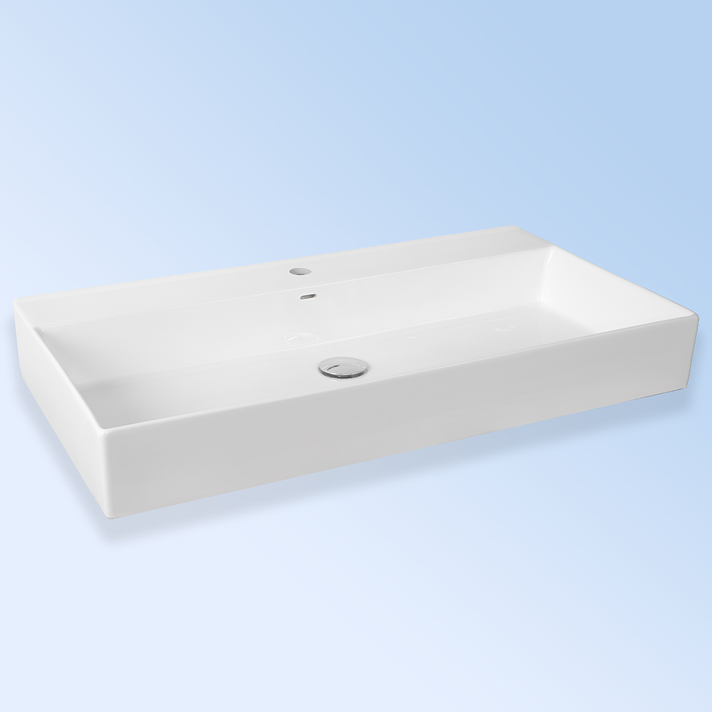 Wall-mount or above-counter porcelain sink with an overflow. Shipping class 2.