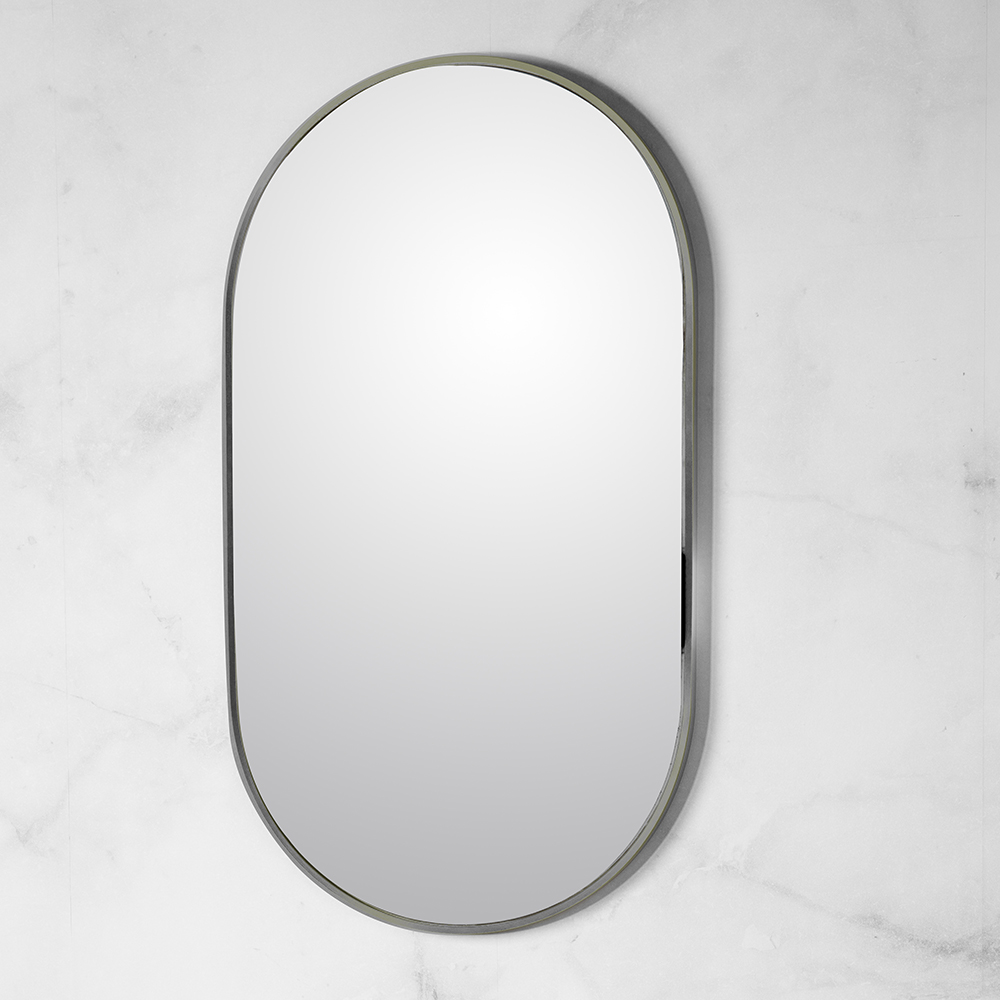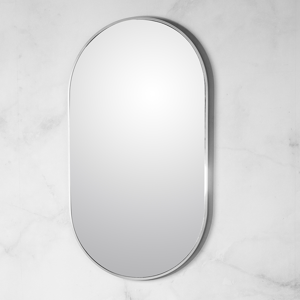 Wall hung mirror with stainless steel frame surround. Can be mounted in multiple orientations. Shipping Class 3.